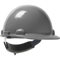 Gray HDPE Shell 4-Point Textile Suspension and Swing Wheel-Ratchet Adjustment Dom Cap Style Smooth Dome Hard Hat
