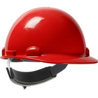Red HDPE Shell 4-Point Textile Suspension and Swing Wheel-Ratchet Adjustment Dom Cap Style Smooth Dome Hard Hat