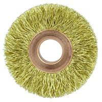 Weiler 2" Small Diameter Crimped Wire Wheel Brush provides a flexible brushing action and consistent performance for demanding light-duty cleaning and deburring applications. 1/2" arbor hole for use on straight grinders, bench/pedestal grinders and buffing lathes. Featuring Weiler's solid ring construction, these radial brushes are available in heat-treated steel, type 302 stainless steel and brass wire for use in a wide variety of applications.
