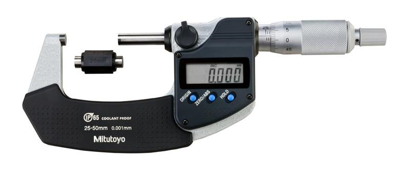 25-50mm, .001mm, IP65 Digimatic Outside Micrometer, No Output, Ratchet Stop