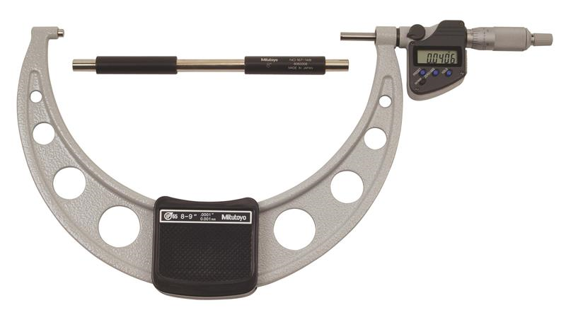 8-9 Inch/203.2-228.6mm, .0001 Inch/0.001mm IP65 Digimatic Outside Micrometer, With SPC Data Output, Ratchet Stop