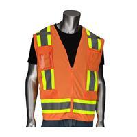 4X-Large Orange ANSI Type R Class 2 Two-Tone Eleven Pocket Solid Front Mesh Back "D" Ring Surveyors Vest