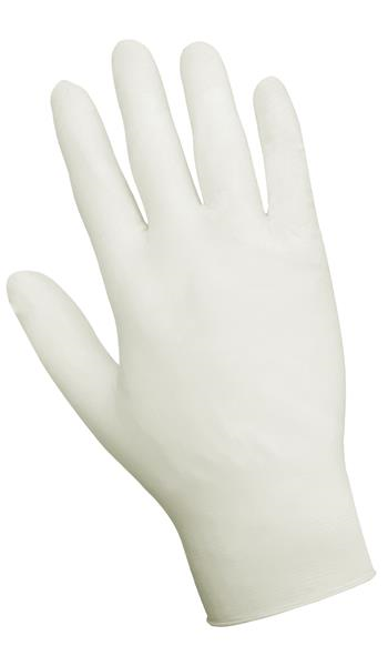 These gloves are made of 5 mil natural colored powder-free latex rubber. They are disposable, ambidextrous, industrial grade, 9.5 inches length, and feature a textured finish with a rolled/beaded cuff. They come 100 gloves to a dispenser box and 10 dispenser boxes per case. These gloves comply with FDA regulations for food contact.