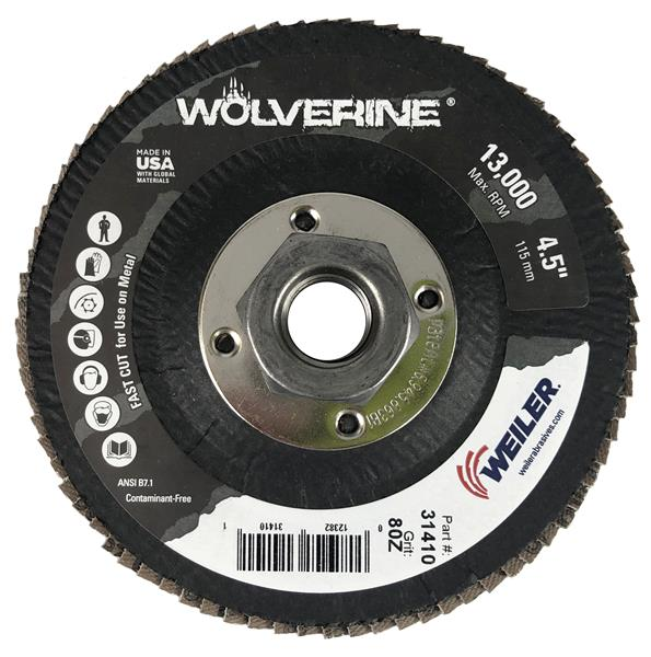 4-1/2 in. Flat Type 27 Phenolic Backing 80 Grit Zirconia Alumina (80Z) 5/8"-11 UNC Nut Wolverine Abrasive Flap Disc