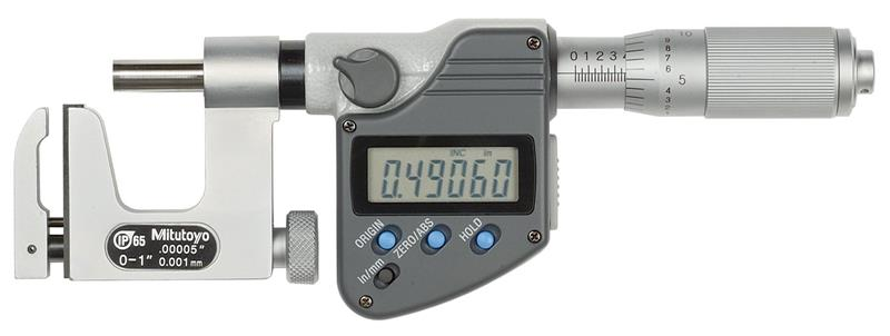 0-1 Inch, 0.00005 Inch, IP65 Uni-Mike Digimatic Interchangeable Anvil Micrometer, With SPC Data Output, Friction Thimble, Flat and Rod Anvils Included