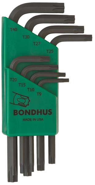Star Tip Star Key L-wrench Set of 8 Pieces with ProGuard™ Finish. Packaged in Bondhex Color Coded Case. Includes: Short Arm. Sizes T9, T10, T15, T20, T25, T27, T30 & T40
