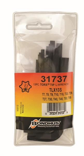 13 Piece Torx L-wrench Set, Short Arm - Sizes: T7-T55