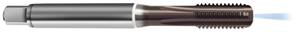 Coolant fed taps are designed to increase cutting efficiency and chip evacuation by supplying coolant directly to the cutting zone. Coolant ducts within the tap are directed either radially or axially. Radial coolant ducts funnel coolant directly into the flute of the tap while radial coolant ducts channel coolant to the point of the tap.