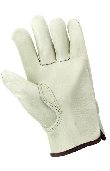 These premium drivers style gloves have a grain cowhide leather shell and feature a keystone thumb. The back of the hand has a pull strap for securing the wrist.