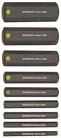 ProHold Socket Hex Bit 9 Piece Tool Set, without Sockets - 2" Length. Includes sizes: 4mm, 5mm, 6mm, 7mm, 8mm, 10mm, 12mm, 14mm, 17mm. With ProHold Button Technology. Protanium High Torque Steel and ProGuard™ corrosion resistant finish. Packaged in a transparent clamshell.