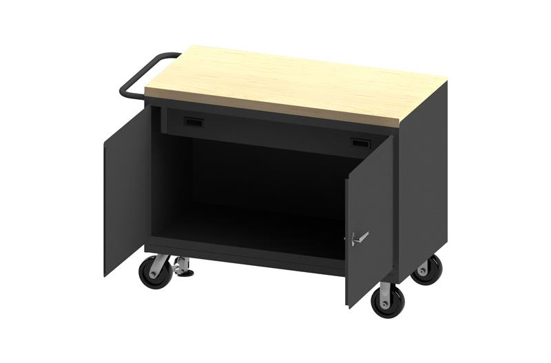 24-1/4 in. x 54-1/8 in. x 37-3/4 in. Gray 2-Door Maple Top Floor Lock Mobile Bench Cabinet