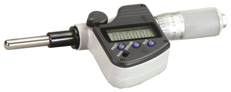 0-1 Inch/0-25.4mm, .00005 Inch/0.001mm, IP65 Digimatic Micrometer Head, .375 Inch Diameter Plain Stem, Spherical (SR4) Spindle Face,