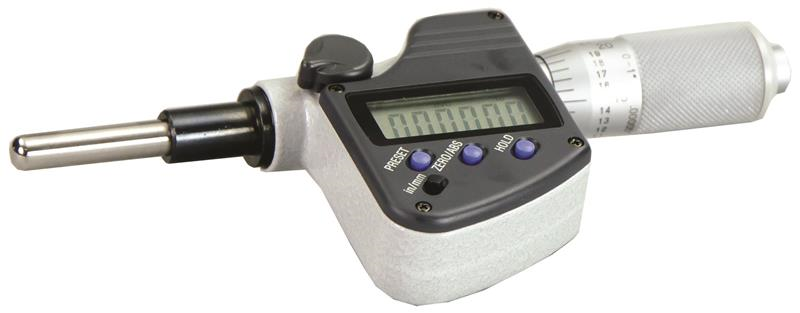 0-1 Inch/0-25.4mm, .00005 Inch/0.001mm, IP65 Digimatic Micrometer Head, .5 Inch Diameter Plain Stem, Flat Carbide Tipped Spindle Face, Ratchet Stop