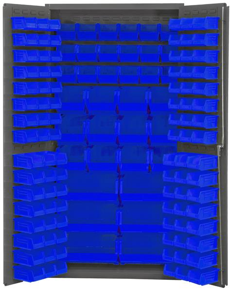 36 in. x 24 in. x 72 in. Gray 14 Gauge Storage Cabinet with 132 Blue Hook-On Bins