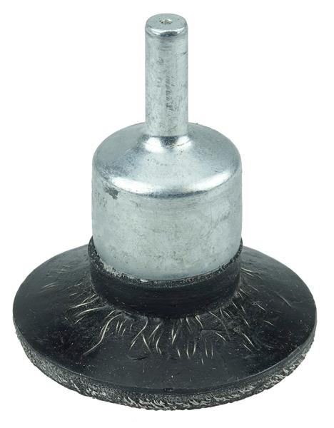 Weiler 1-3/4" Polyflex Encapsulated Circular Flared Crimped Wire End Brush features a heat-stabilized black elastomer that gradually wears exposing consistent short trim for maximum aggression and long life. Ideal for applications on flat surfaces that require maximum aggression but no flexibility in the brushing action. 1/4" stem for use on die grinder and right angle air die grinder.
