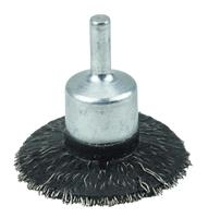 Weiler 2" Polyflex Encapsulated Circular Flared Crimped Wire End Brush features a heat-stabilized black elastomer that gradually wears exposing consistent short trim for maximum aggression and long life. Ideal for applications on flat surfaces that require maximum aggression but no flexibility in the brushing action. 1/4" stem for use on die grinder and right angle air die grinder.