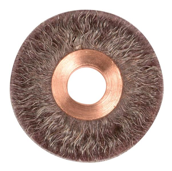 - Identifiable by their copper center, Weiler's small diameter crimped wire wheels feature a plain arbor hole for use on a variety of portable tools and stationary machines