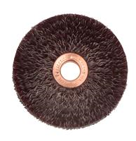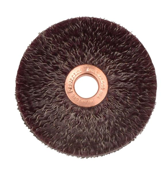 Weiler 3" Polyflex Encapsulated Small Diameter Crimped Wire Wheel Brush features an encapsulation that gradually wears away to expose a consistent short trim for higher aggression, controlled brushing action and longer life. 1/2" arbor hole for use on straight grinders, bench/pedestal grinders and buffing lathes. Featuring Weiler's solid ring construction, these radial brushes are available in heat-treated steel, type 302 stainless steel and brass wire for use in a wide variety of applications.