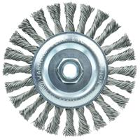 Wolverine 6" Standard Twist Knot Wire Wheel Brush provides an aggressive brushing action for general purpose deburring cleaning and surface preparation applications. Featuring Weiler individual knot hole construction, these radial brushes are available in heat-treated steel, type 302 stainless steel and bronze wire for use in a wide variety of applications. 5/8"-11 nut for use on right angle grinders.