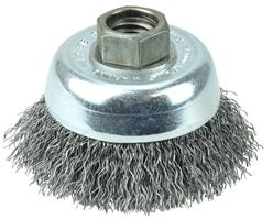 Wolverine 3" Crimped Wire Cup Brush provides flexible brushing action and cost effective performance in general purpose cleaning applications. 5/8"-11 nut for use on right angle grinders.