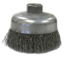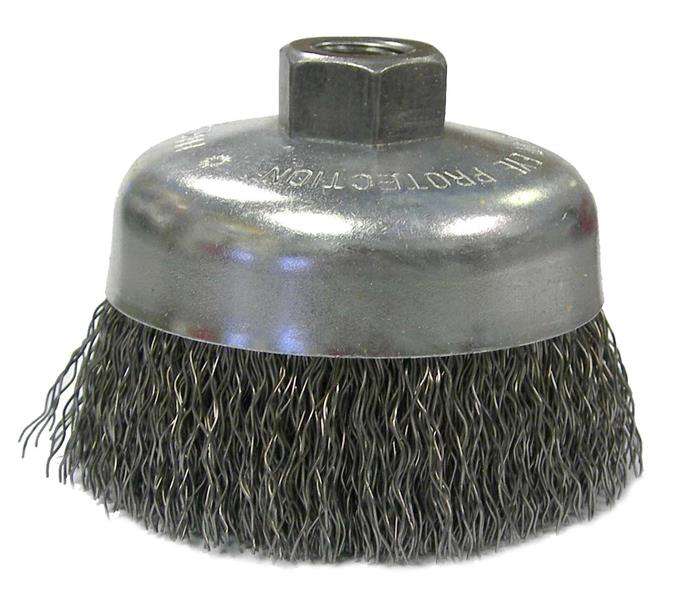 Wolverine 6" Crimped Wire Cup Brush provides flexible brushing action and cost effective performance in general purpose cleaning applications. 5/8"-11 nut for use on right angle grinders.