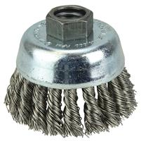 Wolverine 3" Knot Wire Cup Brush provides an aggressive brushing action for general-purpose surface cleaning applications. 5/8"-11 nut for use on right angle grinders.