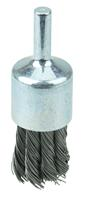 Wolverine 3/4" Knot Wire End Brush features hollow end construction and heavy duty brushing action. Ideal for more demanding cleaning applications in recessed areas. 1/4" stem diameter for use on die grinder, drill and drill presses.