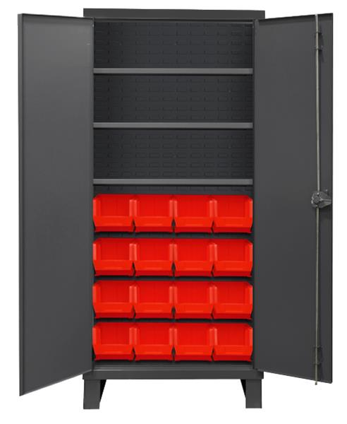 36 in. x 24 in. x 78 in. Gray 3-Shelf Cabinet with 16 Red Hook-On Bins