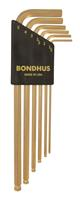 Ball End Tip Hex Key L-wrench Set of 6 Pieces with GoldGuard plated finish. Long Arm. Packaged in Bondhex Color Coded Case. Includes Sizes: 1.5mm, 2mm, 2.5mm, 3mm, 4mm & 5mm