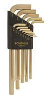Hex Tip Hex Key L-wrench Set of 13 Pieces with GoldGuard plated finish. Long Arm. Packaged in Bondhex Color Coded Case. Set includes: .050", 1/16", 5/64", 3/32", 7/64", 1/8", 9/64", 5/32", 3/16", 7/32", 1/4", 5/16" & 3/8"