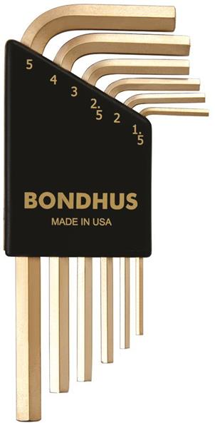 Hex Tip Hex Key L-wrench Set of 6 Pieces with GoldGuard plated finish. Short Arm. Packaged in Bondhex Color Coded Case. Set Includes: 1.5mm, 2mm, 2.5mm, 3mm, 4mm & 5mm