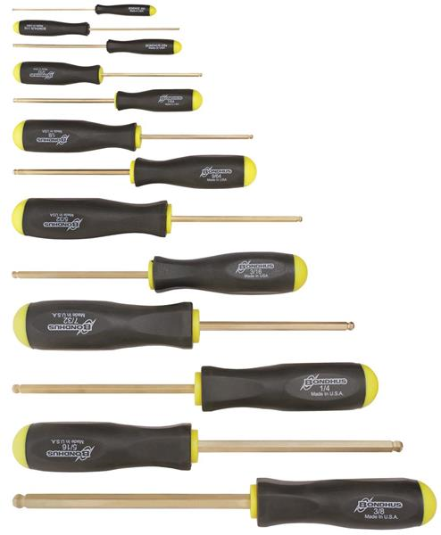 13 Piece GoldGuard Plated Ball End Screwdriver Set - Sizes: .050-3/8 Inch