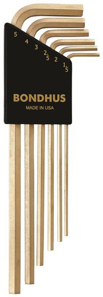 Hex Tip Hex Key L-wrench Set of 6 Pieces with GoldGuard plated finish. Long Arm. Packaged in Bondhex Color Coded Case. Set Includes: 1.5mm, 2mm, 2.5mm, 3mm, 4mm & 5mm
