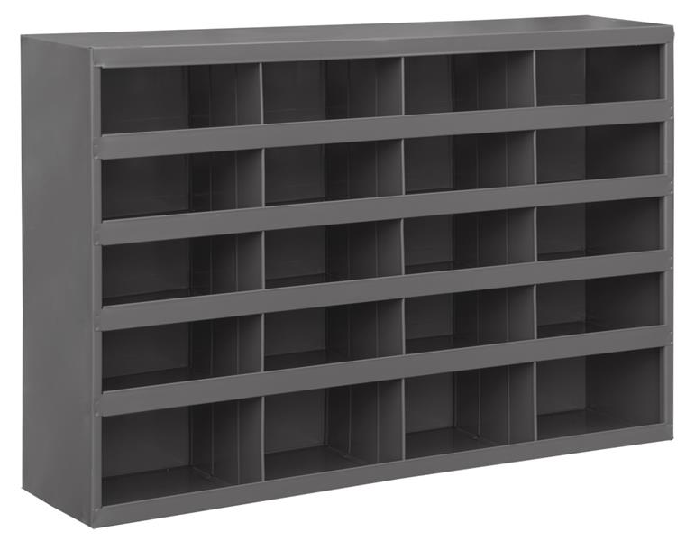 20 Opening Bin. All parts bin cabinet welded, prime cold rolled steel. Fully hemmed 1-1/8 in. bin fronts to hold labels and retain parts. Roll-formed sides for increased strength and stability. Modular with all other 9 in. deep bins. Mounting holes are located in both the top and bottom. Gray powder coat finish. Ships fully assembled.