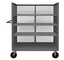 3 Sided Mesh Truck with 6 in. x 2 in. Phenolic casters, (2) rigid and (2) swivel, 4 shelves and tubular push handle. 3,000 lb capacity.