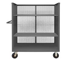 3 Sided Mesh Truck with 6 in. x 2 in. Polyurethane casters, (2) rigid and (2) swivel, 3 shelves and tubular push handle. 3,600 lb. capacity.