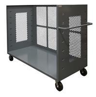 3 Sided Mesh Truck with 6 in. x 2 in. Phenolic casters, (2) rigid and (2) swivel, 1 shelf and tubular push handle. 2,000 lb. capacity.