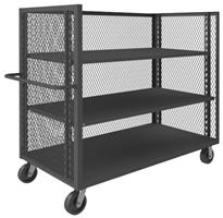 3 Sided Mesh Truck with 6 in. x 2 in. Phenolic casters, (2) rigid, (2) swivel, 3 shelves, (2) adjustable and tubular push handle. 2,000 lb. capacity. Ships fully assembled.