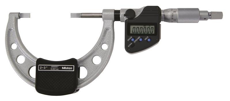 2-3 Inch, 0.00005 Inch, Digimatic Blade Micrometer, .75mm Blade Thickness, Non-Rotating Spindle, With SPC Data Output, Ratchet Stop