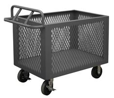 4 Sided Mesh Box Truck with 6" x 2" Phenolic casters, (2) rigid and (2) swivel with side brakes, 1 shelf and ergonomic tubular push handle, gray