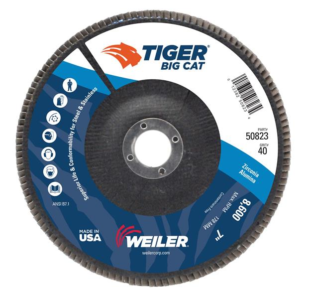 7 in. Flat Type 27 Phenolic Backing 40 Grit Zirconia Alumina (40Z) 7/8 in. Arbor Hole Big Cat Abrasive Flap Disc