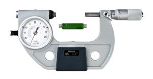 - Retractable anvil with indicator for three-wire measurments of pitch diameter of precision screws and parallelism measuremnets.