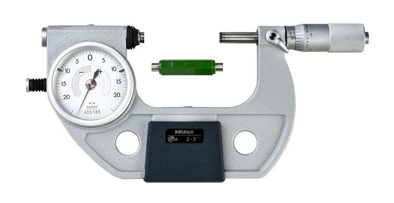 2 Inch - 3 Inch, 0.00005 Inch, Dial Indicating Micrometer, Carbide Steel Tip, With Standard