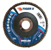5 in. Conical Type 29 Phenolic Backing 36 Grit Zirconia Alumina (36Z) 7/8 in. Arbor Hole Tiger X Flap Disc
