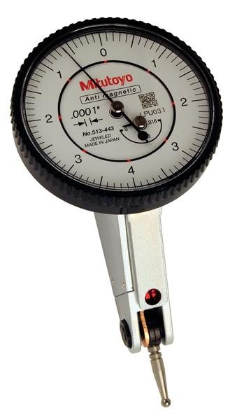 0.016 Inch, Dial Test Indicator, 20 Degree Tilted Face, Basic Set 0-4-0, 0.0001 Inch Graduation, 3/8 Inch Stem, 0.079 In Contact Point, 15mm Length, Anti-Magnet, Jeweled Bearing, Rev Counter