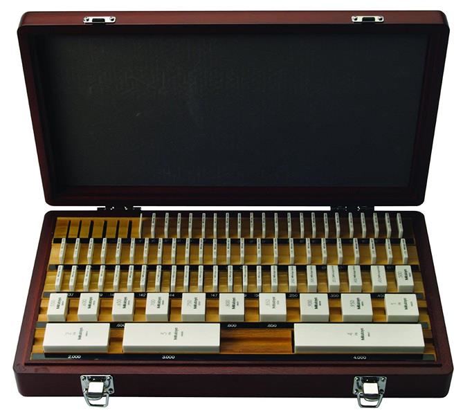 Back To Top| Includes | 1 pc. 0.050 block, 10 pcs. 0.1000–0.1009 blocks Step of 0.0001, 49 pcs. 0.101–0.149 blocks Step of .001, 17 pcs. 0.15–0.95 blocks Step of 0.05 4 pcs., 1–4 blocks Step of 1 |