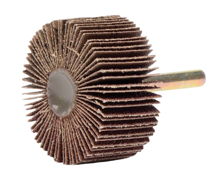 Weiler Tiger premium aluminum oxide 2 inch coated abrasive flap wheels provide fast cutting and long life on steel and other metals. The 1/4 inch stem allows for easy mounting on a die grinder or right angle die grinder. The flap wheel can be dressed to conform to an application part. A solid hub construction increases balance and reduced vibration in applications such as tube ID cleaning, thread cleaning and deburring.