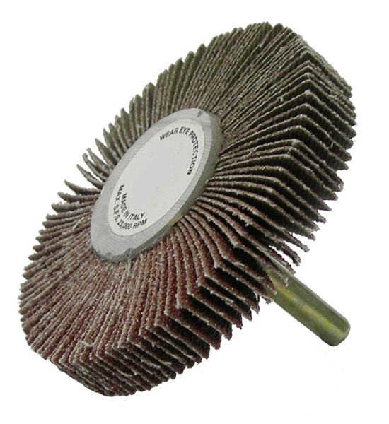 3 in. x 1/2 in. 1/4 in. Stem 60 Grit Aluminum Oxide (60AO) Tiger Coated Abrasive Flap Wheel
