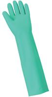 These heavyweight, unsupported nitrile gloves feature a diamond pattern grip. They are 18 inches long with a straight cuff that extends protection up the arm.