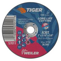 2 in. x 1/16 in. 36 Grit Aluminum Oxide (A36T) 3/8 in. Arbor Hole Tiger AO Type 1 Cut-Off Wheel